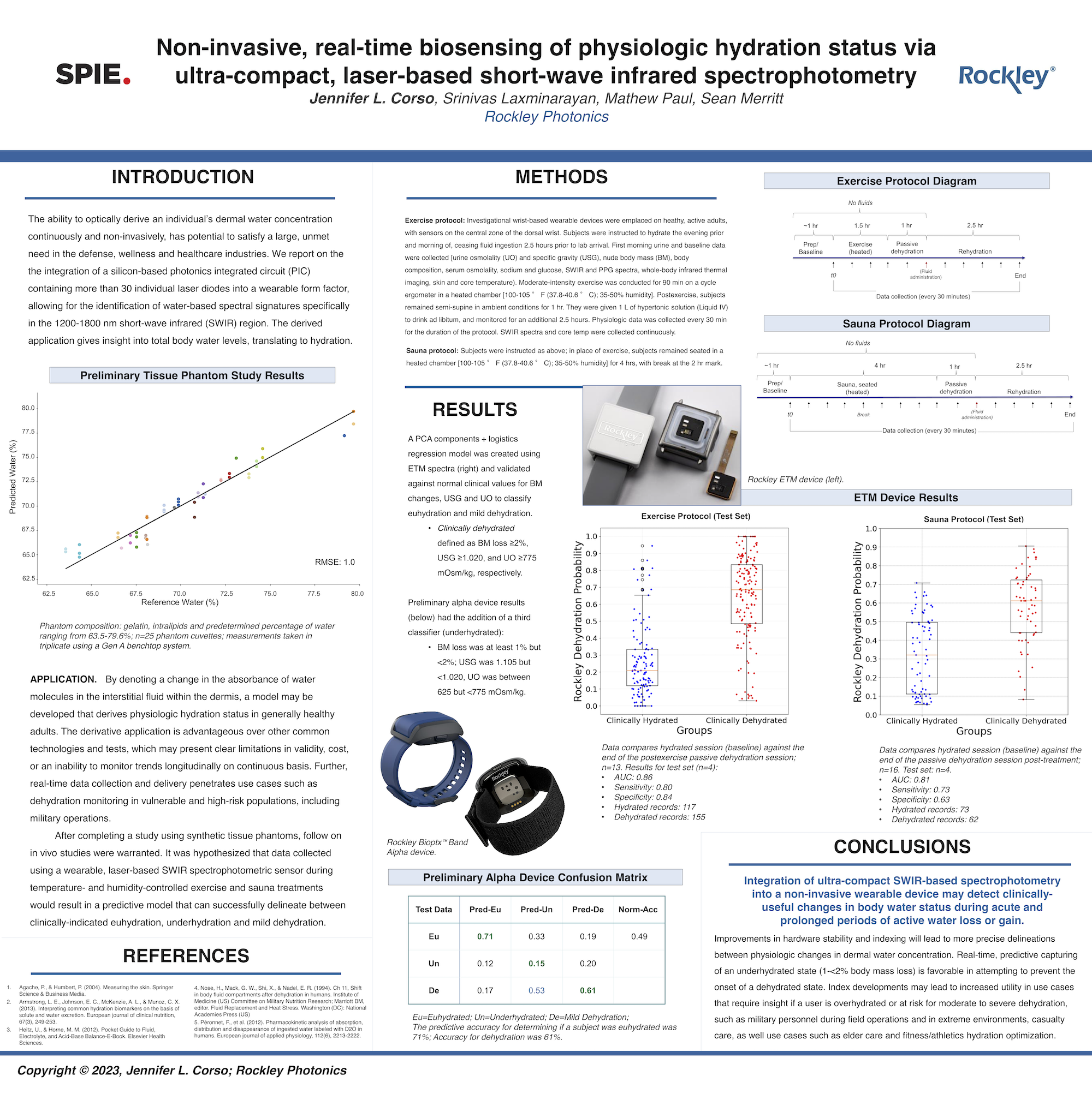 Corso, J. L., Paul, M., Laxminarayan, S., & Merritt, S. (2023, June). Non-invasive, real-time biosensing of physiologic hydration status via ultra-compact, laser-based short-wave infrared spectrophotometry. In Next-Generation Spectroscopic Technologies XV (Vol. 12516, p. 1251610). SPIE.